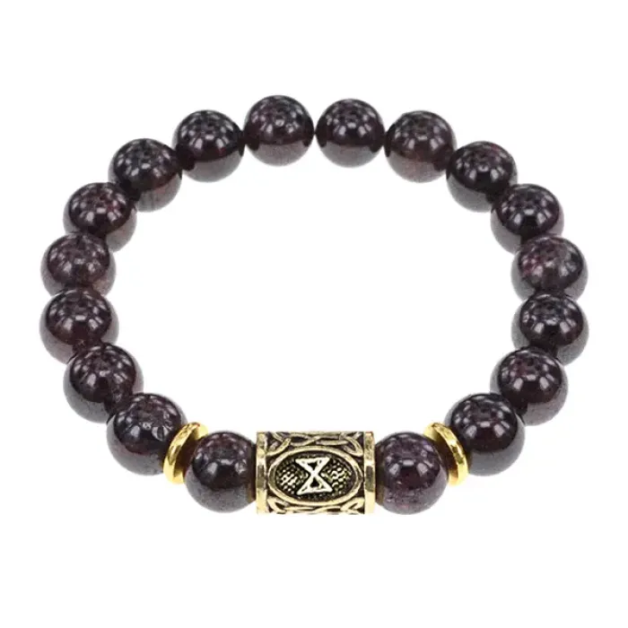Стрейч-браслет с руной Дагаз, выполненный из натурального граната.