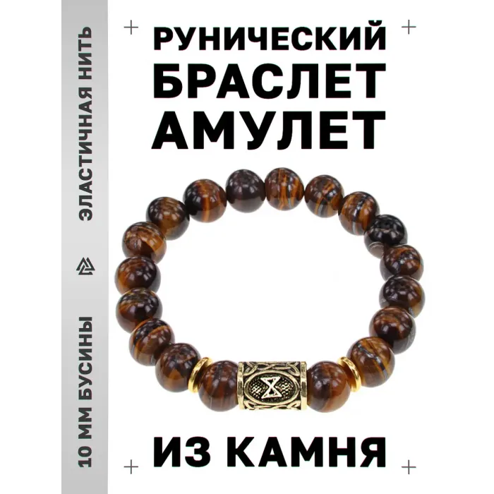Браслет с руной Дагаз и нат. камнем Тигровый глаз BSRF-03-19