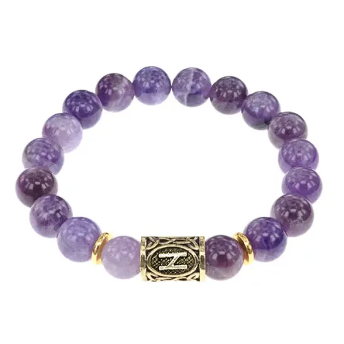 Стрейч-браслет с руной Хагалаз и натуральным камнем аметист.