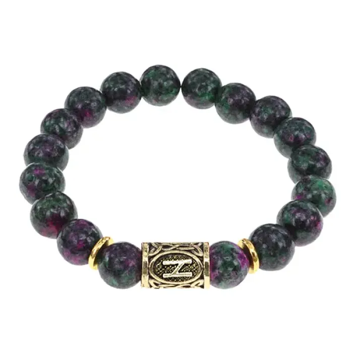 Браслет с руной Хагалаз и синт.камнем Цоизит BSRF-04-22