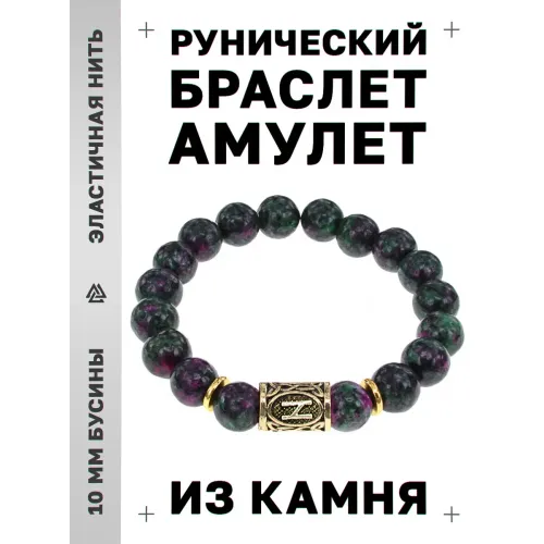 Стрейч-браслет с руной Хагалаз и бусинами из синтетического цоизита.