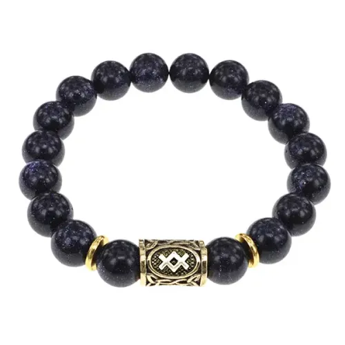 Стрейч-браслет с руной Ингуз и бусинами из синтетического камня синий авантюрин.