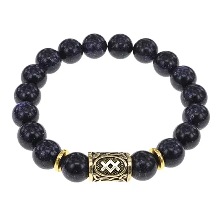 Браслет с руной Ингуз и синт. камнем Синий авантюрин BSRF-05-02