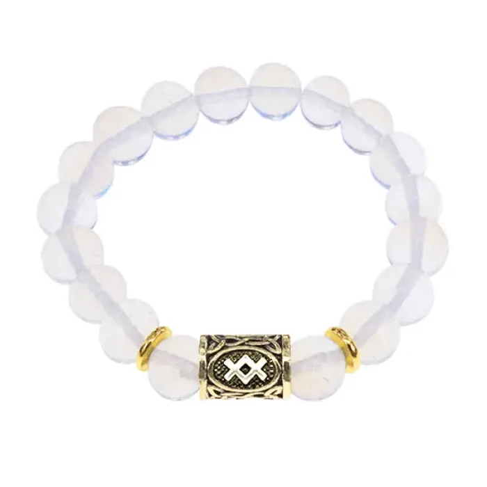 Браслет с руной Ингуз и синт.камнем Лунный камень BSRF-05-11