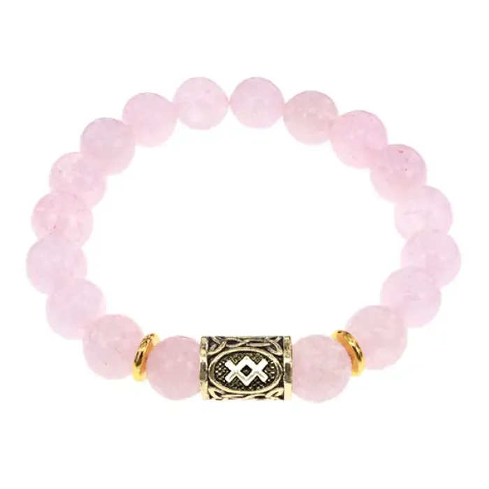 Браслет из натурального розового кварца с нанесённой руной Ингуз.