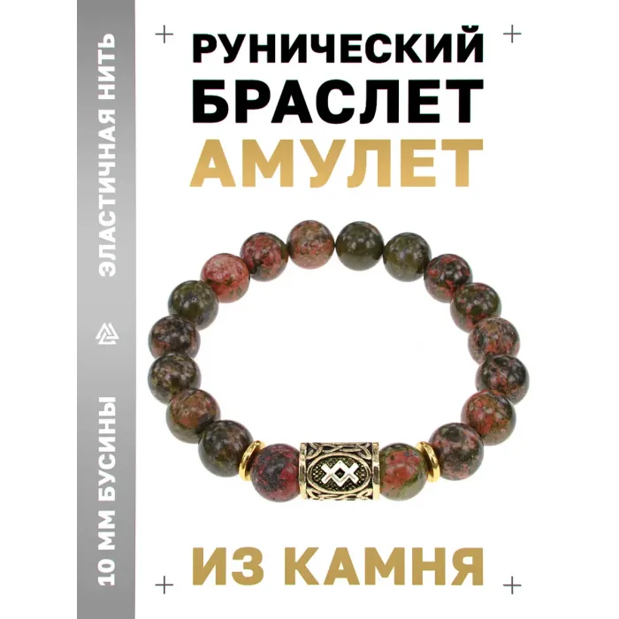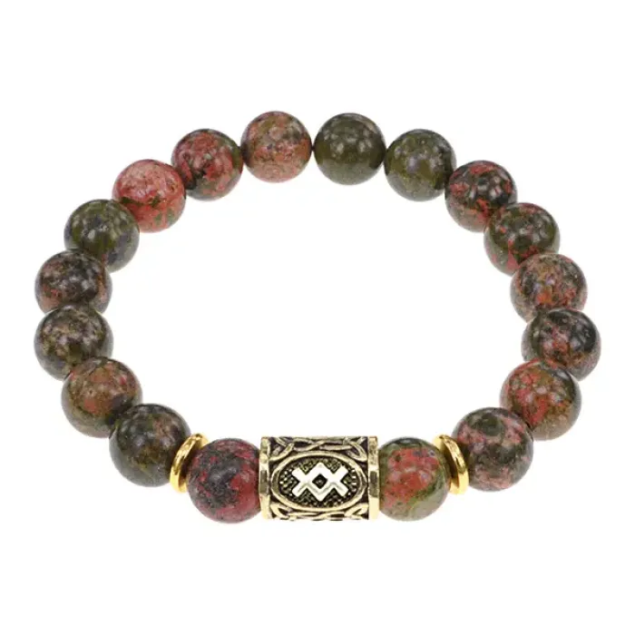 Браслет с руной Ингуз и нат.камнем Унакит BSRF-05-20