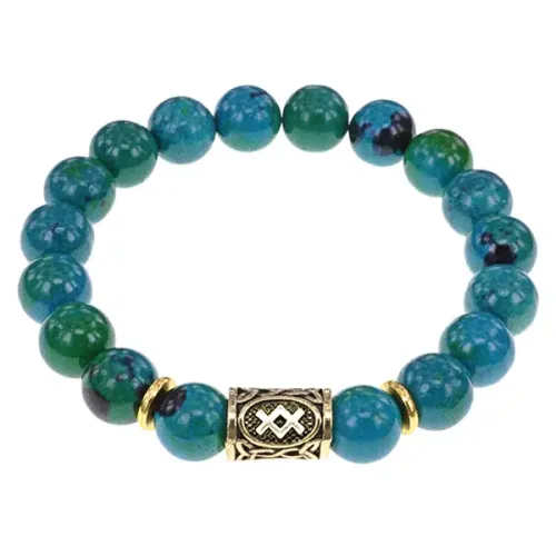 Стрейч-браслет с руной Ингуз, выполненный из синтетического камня хризоколла.