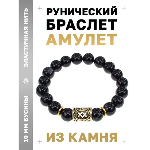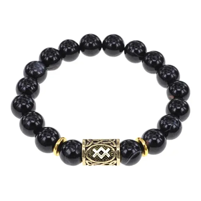 Браслет с руной Ингуз и натуральным камнем черный агат.
