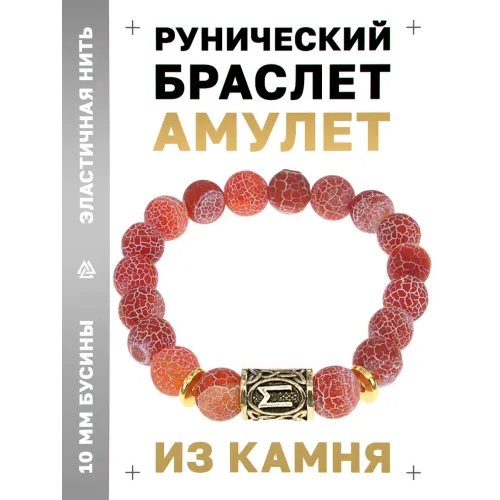 Стрейч-браслет с руной Эваз и бусинами из натурального африканского агата.
