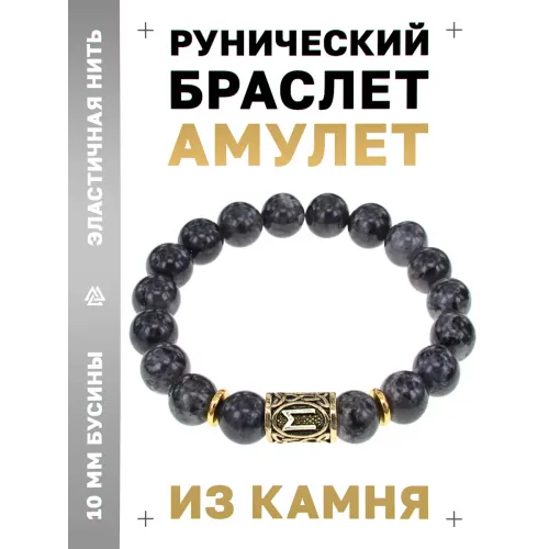 Стрейч-браслет с руной Эваз и натуральным камнем лабрадор.