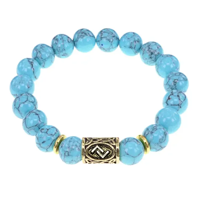 Браслет с символом руны Йера и синтетическим камнем бирюза.