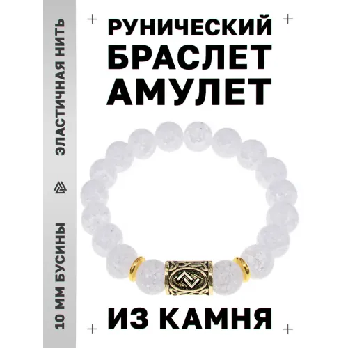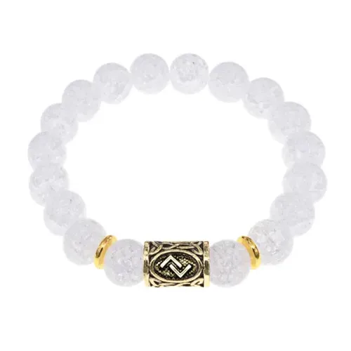 Браслет с руной Йера и синт. камнем Сахарный кварц BSRF-07-16