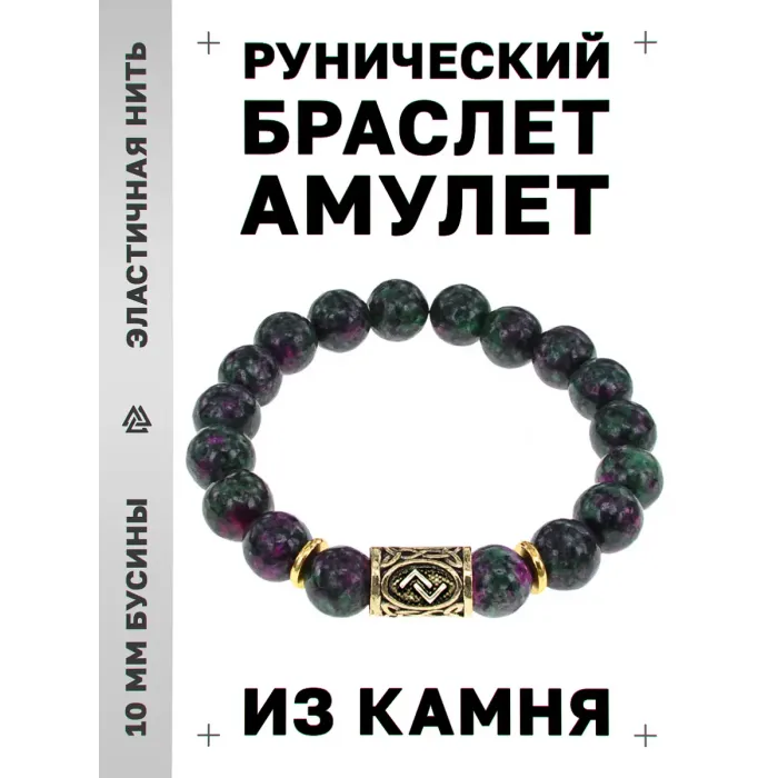 Браслет с руной Йера и синт. камнем Цоизит BSRF-07-22