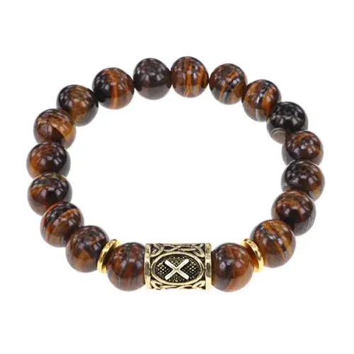 Браслет с руной Гебо и нат. камнем Тигровый глаз BSRF-08-19