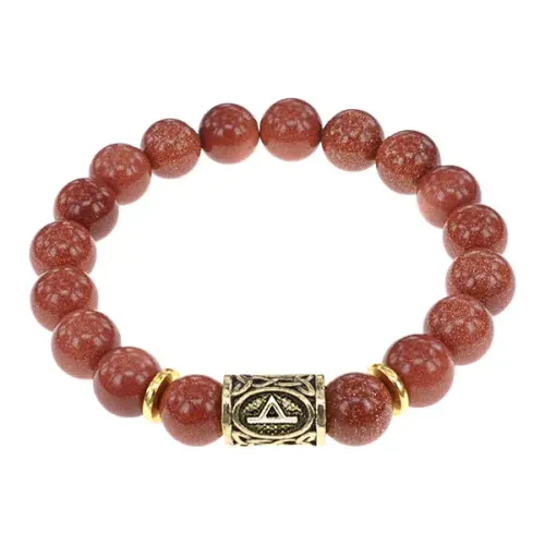 Браслет-амулет из синтетического камня коричневый авантюрин с символом руны Турисаз, выполненный в стиле стрейч.