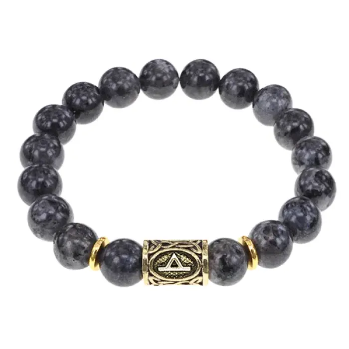 Стрейч-браслет с руной Турисаз и бусинами из натурального камня лабрадор.