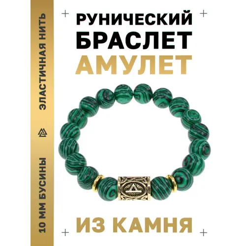Браслет-сувенир из синтетического малахита с подвеской в виде руны Турисаз.