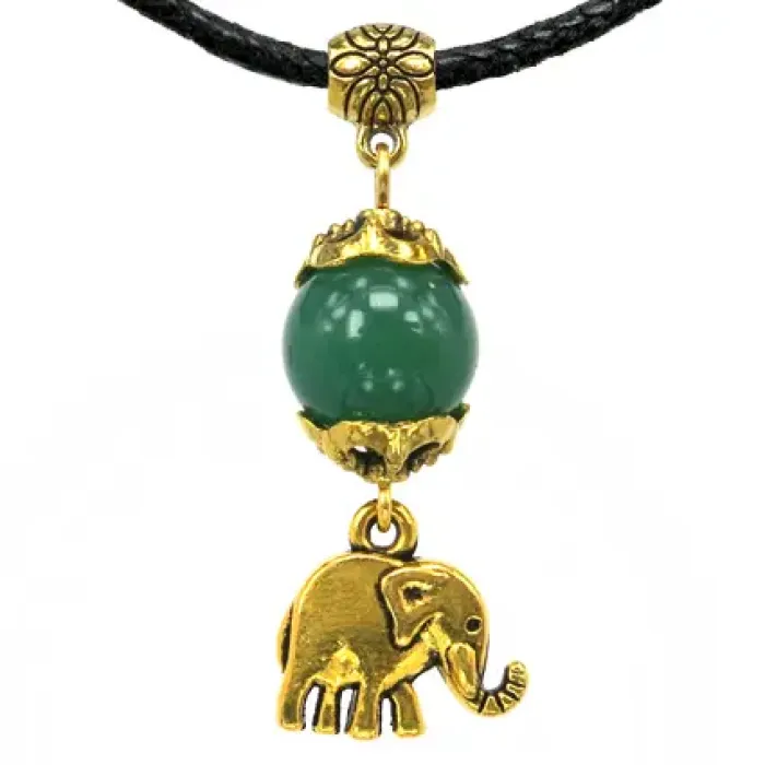 Амулет Мудрость, сила, защита (слон) с натуральным камнем нефрит, цвет золот. MKA028-1