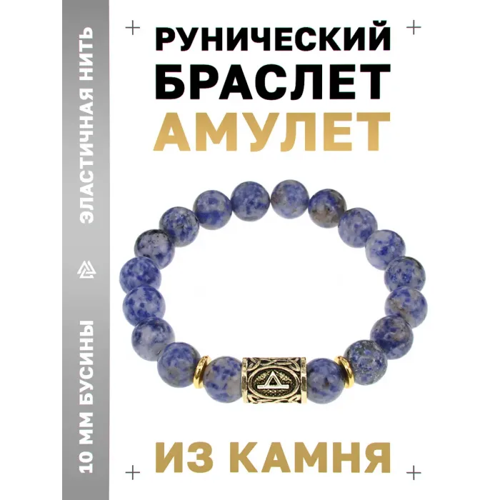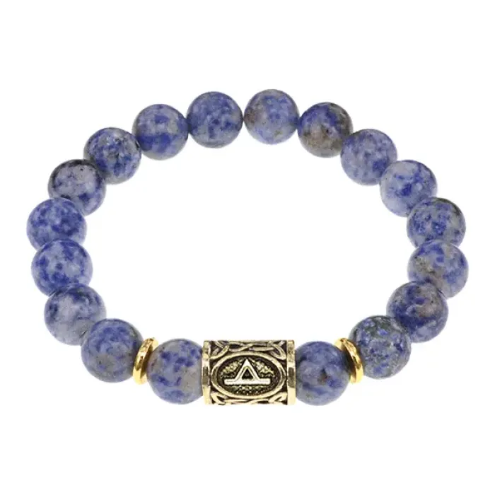 Стрейч-браслет с руной Турисаз и бусинами из натурального камня содалит.