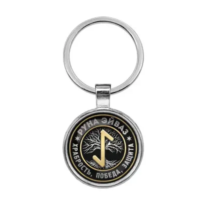 Брелок Руна Эйваз — это стильный аксессуар, который не только украшает ключи, но и несет в себе символику древнескандинавской руны. Изготовленный из бижутерного сплава с покрытием под серебро, стали и стекла, он сочетает в себе прочность и элегантность. Диаметр брелока составляет 28 мм, а изображение защищено выпуклой стеклянной линзой, что придает ему особый шарм. Упакован в прозрачный пакет для удобства хранения или подарка.