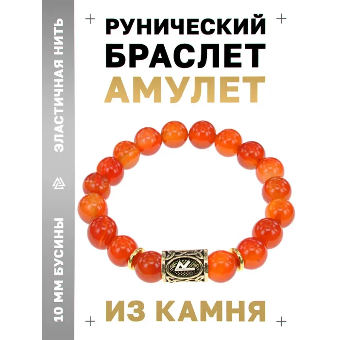 Браслет с руной Райдо и натуральным камнем сердолик.