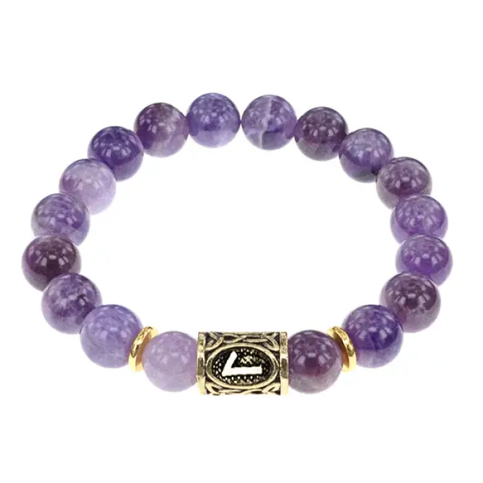 Стрейч-браслет с символом руны Лагуз и натуральным камнем аметист.