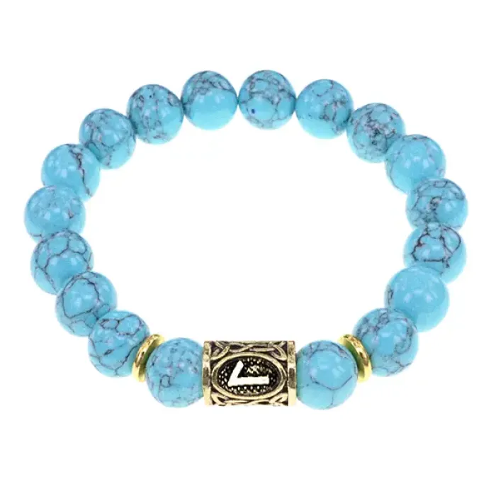 Браслет с руной Лагуз и синт.камнем Бирюза BSRF-11-05