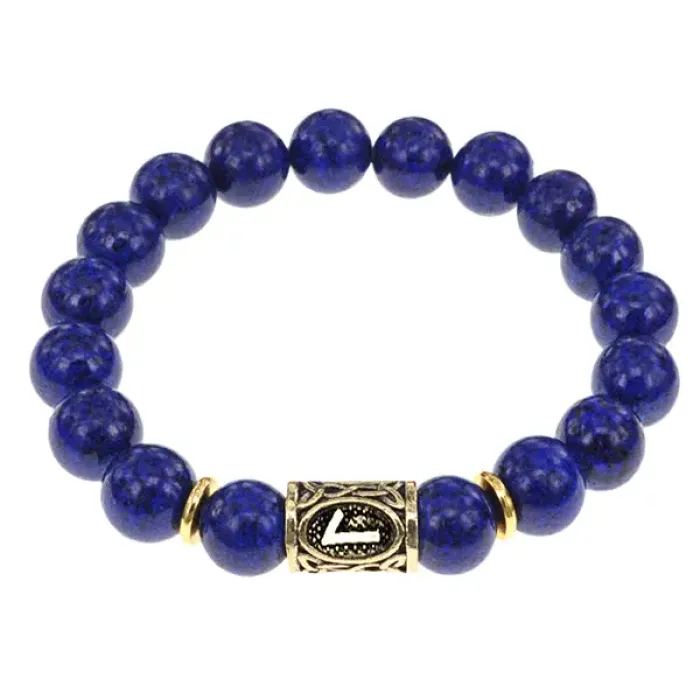 Стрейч-браслет с руной Лагуз и бусинами из натурального лазурита.