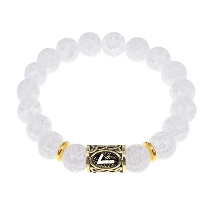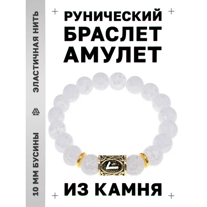 Браслет с руной Лагуз и синт.камнем Сахарный кварц BSRF-11-16