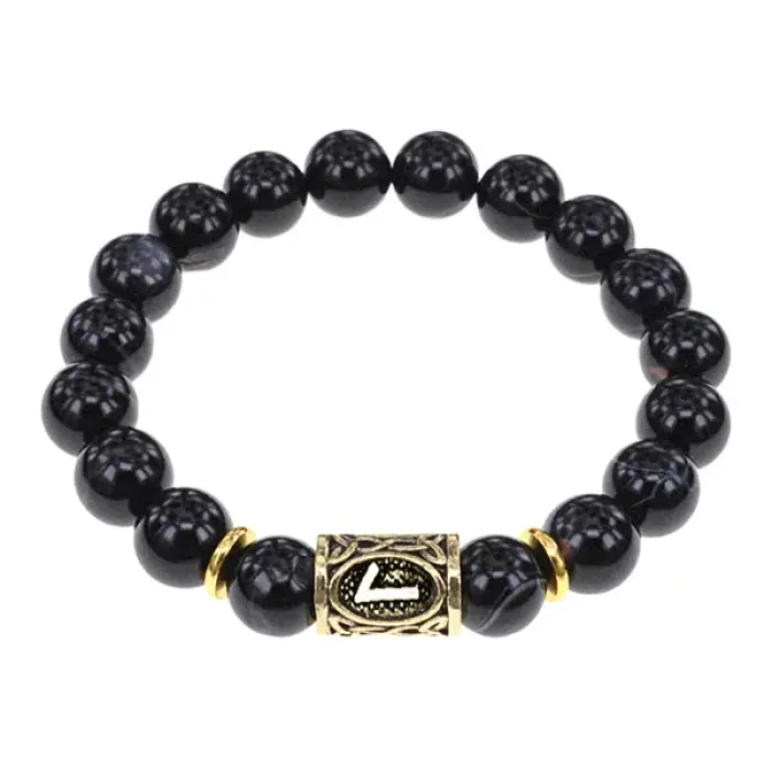Браслет с руной Лагуз и нат.камнем Черный агат BSRF-11-23