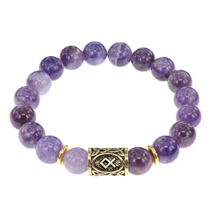 Стрейч-браслет с руной Одал и натуральным аметистом.