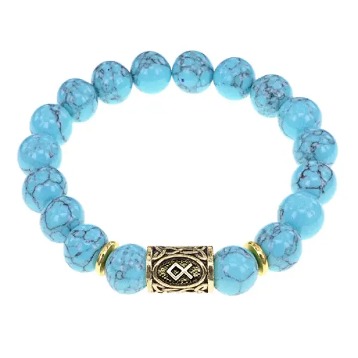 Браслет с руной Одал и синтетическим камнем бирюза.