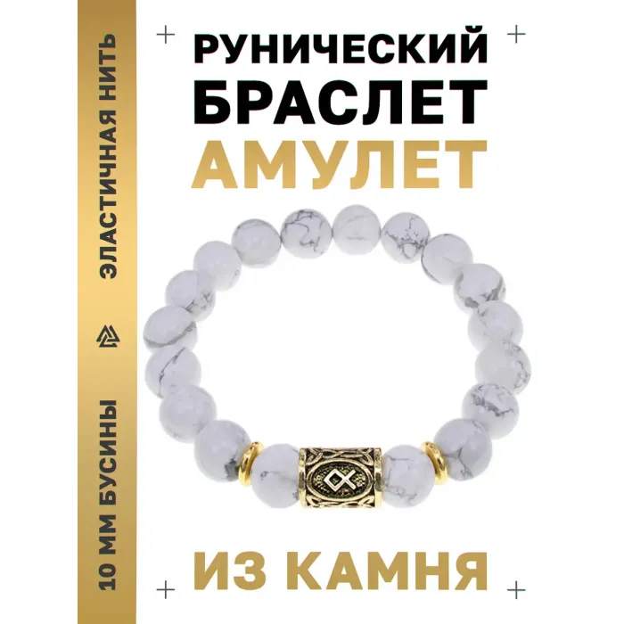 Стрейч-браслет с руной Одал и натуральным камнем кахолонг.