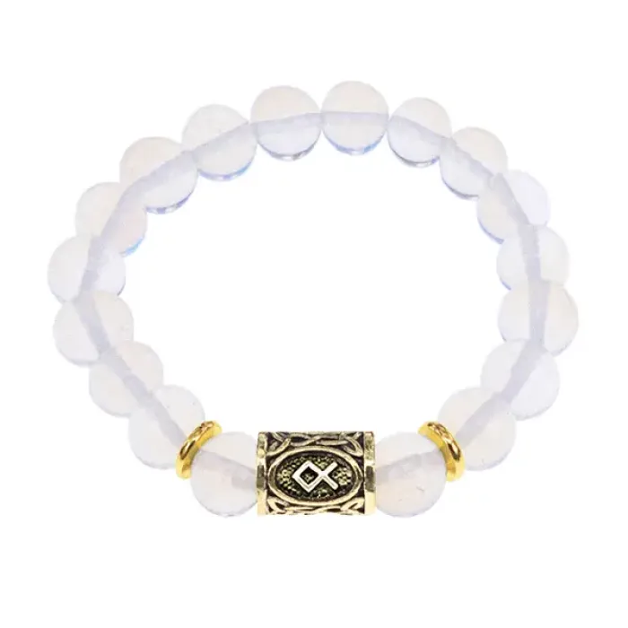 Браслет с руной Одал и синт.камнем Лунный камень BSRF-12-11