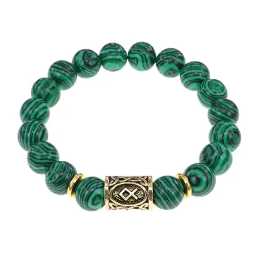 Браслет с руной Одал и синт.камнем Малахит BSRF-12-12