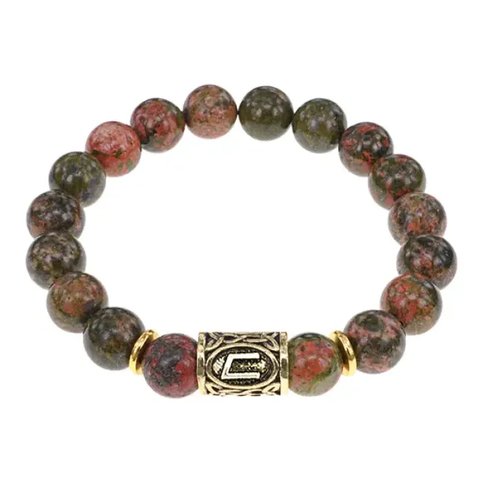 Браслет с руной Уруз и нат.камнем Унакит BSRF-13-20