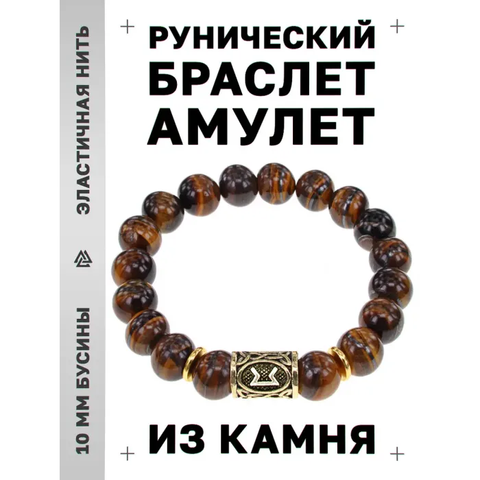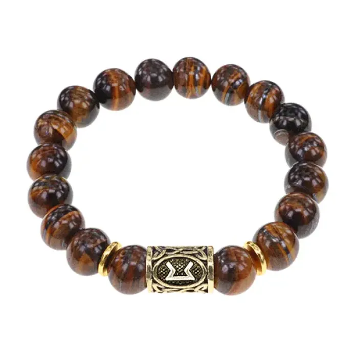 Стрейч-браслет с руной Перт, выполненный из натурального камня Тигровый глаз.