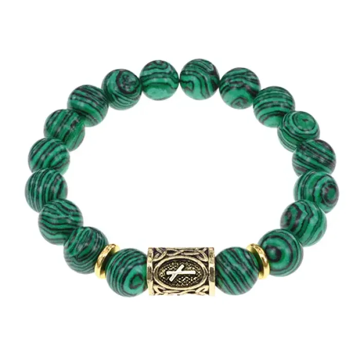 Браслет с символом руны Наутиз и синтетическим камнем малахит.