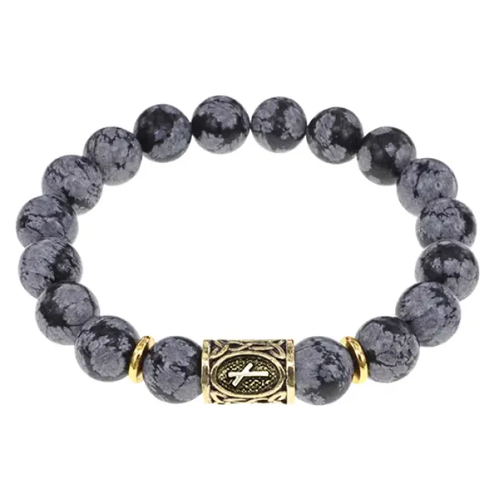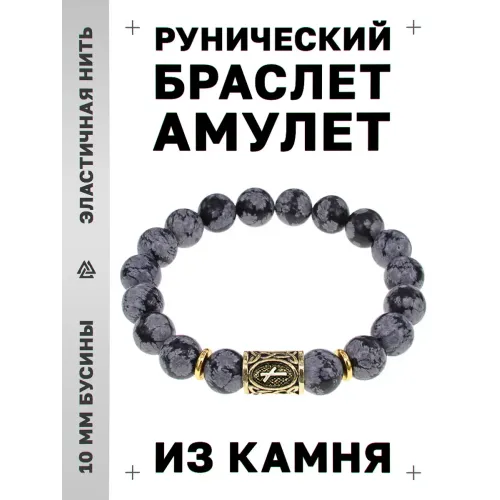 Браслет с руной Наутиз и нат. камнем Снежный обсидиан BSRF-15-14