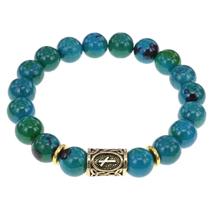 Браслет с руной Наутиз и бусинами из синтетического камня хризоколла.