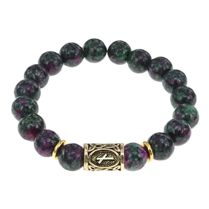 Браслет с символом руны Наутиз и синтетическим камнем цоизит.