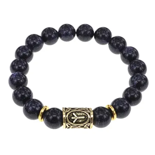 Браслет с символом руны Альгиз и синтетическим камнем синий авантюрин.