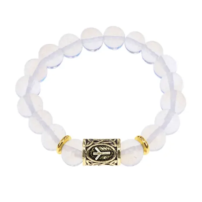 Браслет с руной Альгиз и синт. камнем Лунный камень BSRF-16-11