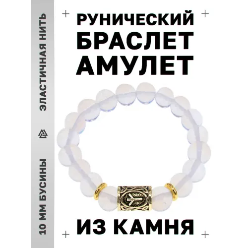 Браслет с руной Альгиз и синтетическим камнем Лунный камень.