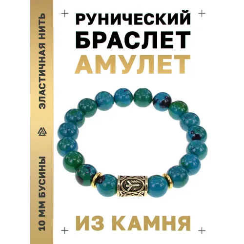 Браслет с символом руны Альгиз и синтетическим камнем хризоколла.