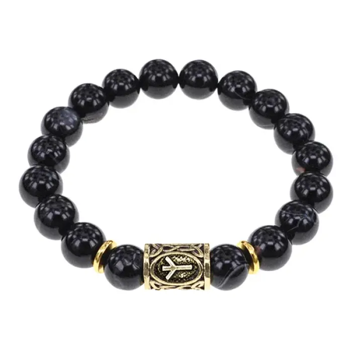 Стрейч-браслет с руной Альгиз, выполненный из натурального черного агата.