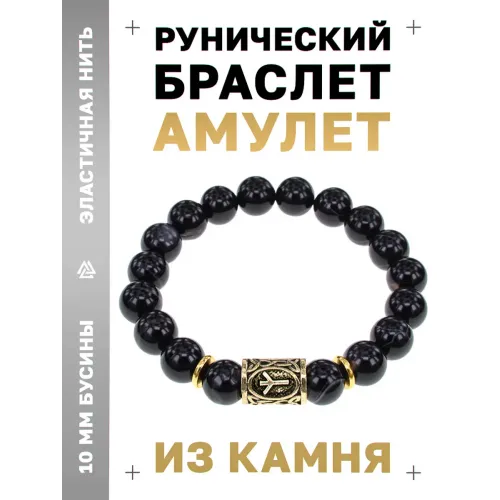 Браслет с руной Альгиз и нат.камнем Черный агат BSRF-16-23