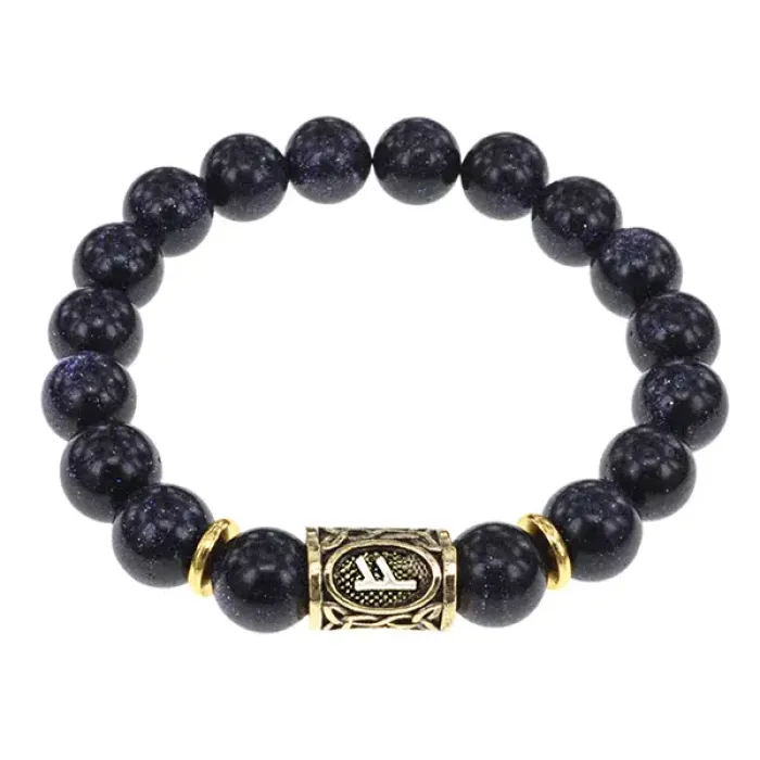 Браслет с руной Феху и синт.камнем Синий авантюрин BSRF-17-02