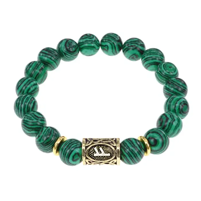 Браслет с руной Феху и синт.камнем Малахит BSRF-17-12