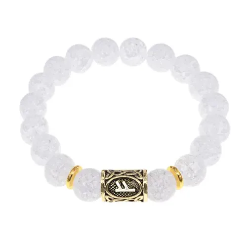 Браслет с руной Феху и синт.камнем Сахарный кварц BSRF-17-16